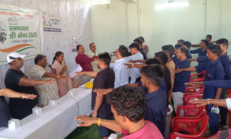 स्वच्छता ही सेवा अभियान का समापन । राणापुर ,झाबुआ। राज्य शासन के आदेश अनुसार दिनांक 17 सितंबर से 2 अक्टूबर गांधी जयंती तक नगर में नगर परिषद द्वारा चलाए जा रहे विशेष सफाई अभियान स्वच्छता ही सेवा के समापन अवसर पर श्री दिलीप सिंह नलवाया जिला उपाध्यक्ष भाजपा अनुसूचित जनजाति मोर्चा के मुख्य आतिथ्य , नगर परिषद अध्यक्ष सुश्री दीपमाला नलवाया की अध्यक्षता तथा श्री लालचंद गारी जिला मंत्री भाजपा तथा पार्षद श्री लोकेंद्र सिंह परिहार के विशेष आतीथ्य में सम्मान समारोह का आयोजन निकाय के गुजरी स्थित सामुदायिक भवन पर किया गया जिसमें अतिथियों द्वारा राष्ट्रपिता महात्मा गांधी तथा देश के पूर्व प्रधानमंत्री श्री लाल बहादुर शास्त्री की तस्वीर पर माल्यार्पण कर आयोजन का शुभारंभ किया गया । आयोजन में निकाय को जी एफ सी में 1 स्टार तथा ओडीएफ प्लस प्लस प्राप्त होने पर समस्त सफाई मित्रों का सम्मान किया जाकर स्मृति चिन्ह भेंट किए गए तथा स्वच्छता एवं नशा मुक्ति की शपथ दिलवाई गई। इस अवसर पर अभियान में प्रतिदिन करवाई गई विभिन्न गतिविधियों के संबंध में जानकारी मुख्य नगर पालिका अधिकारी लक्ष्मीकांत शर्मा द्वारा दी गई । कार्यक्रम का संचालन सईद मकरानी द्वारा किया गया तथा आभार उपयंत्री अर्पित हटीला द्वारा व्यक्त किया गया। उक्त अवसर पर निकाय के राजस्व निरीक्षक चंद्रकांत जैन, धर्मेंद्र उपाध्याय, महबूब अली पराक्रम राजावत ,हरीश बामनिया ,सना जमादार आदि कर्मचारी उपस्थित थे।